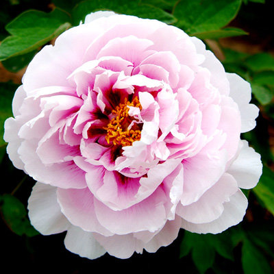 На одном растении может образоваться от 30 до 70 цветков диаметром около 15 см. Каждый из них – это шедевр природы. Махровая, розовидная структура цветка адаптирована для того, чтобы радовать даже самых искушенных любителей цветов. По цветовой гамме пион удивляет: пастельно-розовые тона в центре плавно переходят в красно-фиолетовые у края, окантованным нежной белой каймой. Тычинки желтого цвета добавляют яркости, а нежный аромат делает его еще более привлекательным.
