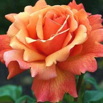 Цветение этой розы напоминает эффектный солнечный закат. Крупные, диаметром 8-11 сантиметров, махровые цветки чашевидной формы собраны в пышные многоцветковые кисти. Конусовидные бутоны оранжево-красного оттенка раскрываются в медно-оранжевые цветы, которые затем плавно меняют цвет на теплый абрикосово-малиновый с нежным розовым отливом. Каждый цветок, состоящий из 25-40 лепестков, наполняет пространство вокруг себя сильным, сочным фруктовым ароматом.