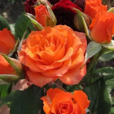 Цветок розы Алегрия покоряет очень теплым, солнечным оранжевым окрасом, который отличается особой яркостью и насыщенностью. Классическая бокаловидная форма и средний размер, около 4-5 сантиметров в диаметре, подчеркивают ее элегантность. Каждый бутон умеренно махровый. На одном прочном стебле одновременно распускается от 5 до 10 таких цветков, создавая эффектную кисть. Аромат у этого сорта нежный и легкий. Куст компактный, высотой до 60 сантиметров и шириной около 40 сантиметров, с густой листвой темно-зеленого глянцевого оттенка.