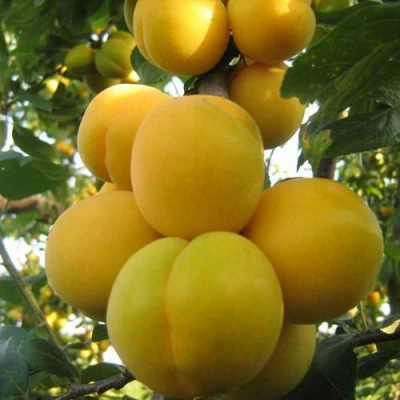 - Округлой, с сильно выраженным брюшным швом, формы, жёлтого цвета. Мякоть приятная и крайне сочная, жёлтого цвета. Косточка мелкая, легко извлекается;