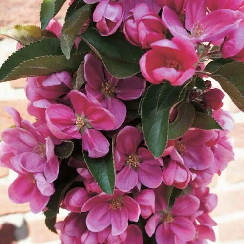 Яблоня декоративная Зелёный букет выделяется особой декоративностью всех компонентов: яркие крупные цветы, нарядные плоды и изысканная листва украшают компактное деревце сменяя друг друга на протяжении всего года.