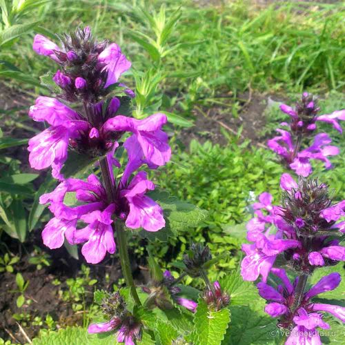 Буквица крупноцветная устойчива к погодным капризам и не требует сложного ухода. Она морозостойка (до -32 °C), засуху переносит без паники, болезни обходят стороной. Главное — посадить в рыхлую, водопроницаемую почву без застоя влаги. Свет предпочитает рассеянный или прямой, но не обжигающий: солнце или полутень. Отлично себя чувствует как на клумбе, так и в природных миксах, у кромки газона или на границе цветника.